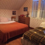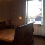 A l’étage, en demi-niveau, une petite chambre et au demi-niveau supérieur, deux belles chambres lumineuses.