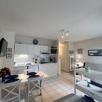 L’AGENCE FACE A LA MER IMMOBILIER vous propose un grand studio de 27 m2 lumineux très bien équipé en parfait état situé au premier étage d’une petite copropriété fermée et sécursée, en plein centre-ville de SAINT PIERRE QUIBERON à proximité des commerces et du Port d’Orange.