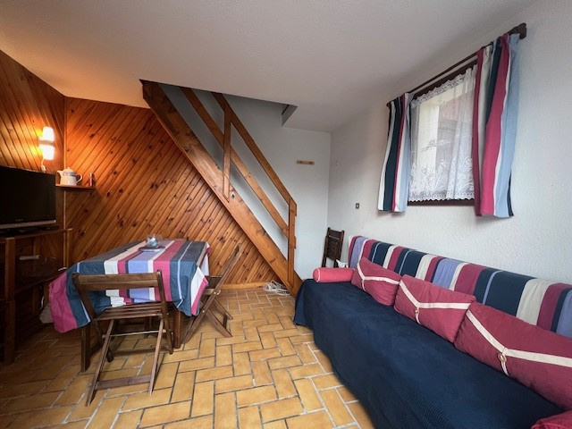 Au rez-de-chaussée : une pièce de vie avec cuisine ouverte, wc et salle d’eau