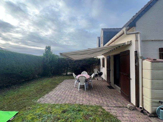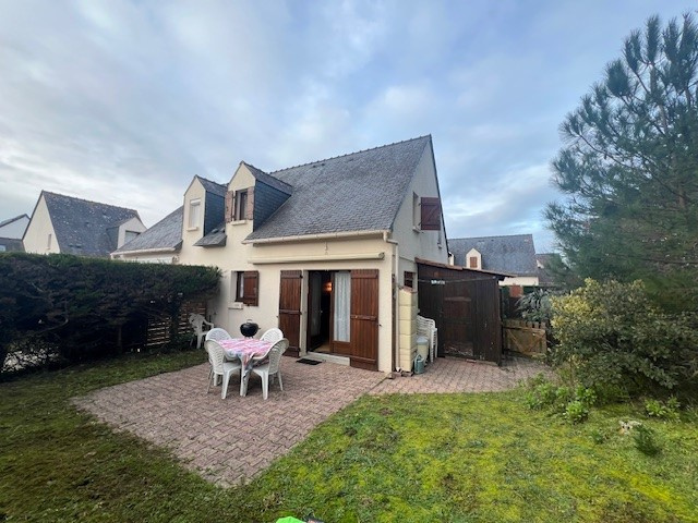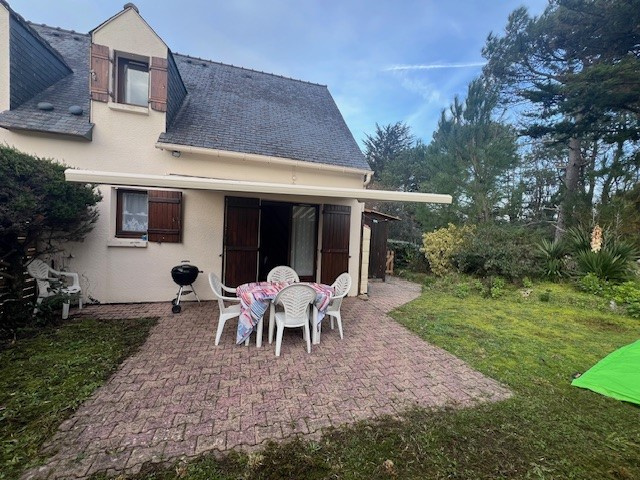 EN EXCLUSIVITE FACE A LA MER IMMOBILIER vous propose cette petite maison située dans une copropriété avec piscine sécurisée à proximité immédiate de la plage de Kerhillio . Elle donne sur un jardin clos, sans vis-à-vis et sur un grand espace boisé,