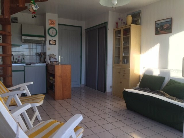SEULEMENT A L’AGENCE FACE A LA MER IMMOBILIER – A proximité immédiate de la Grande Plage de Penthièvre, découvrez cet appartement de 34 m2, situé dans une petite copropriété . Il se compose d’une pièce de vie avec coin cuisine équipée et aménagée et une belle terrasse plein Sud, Au premier étage, une chambre avec balcon vue mer, wc séparé, une salle d’eau, une cabine Et au-dessus une chambre . Ce logement est bien agencé et possède de nombreux rangements. L’appartement bénéficie également d’un box en sous-sol pour garer votre véhicule ou pour stocker votre matérel