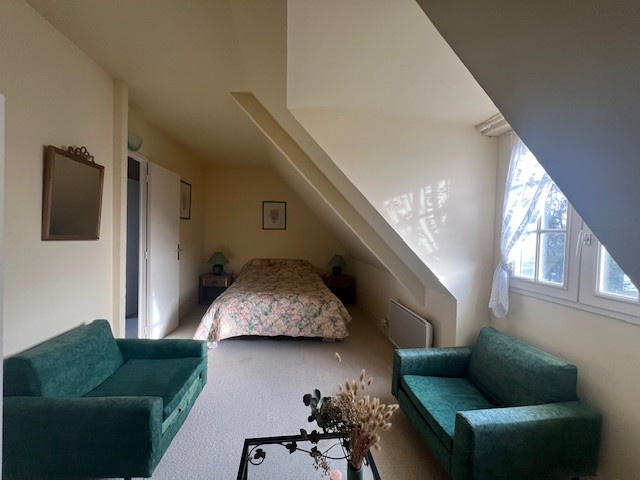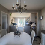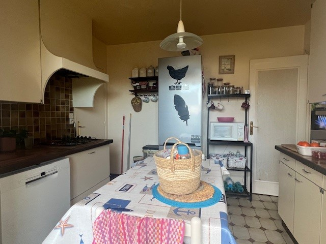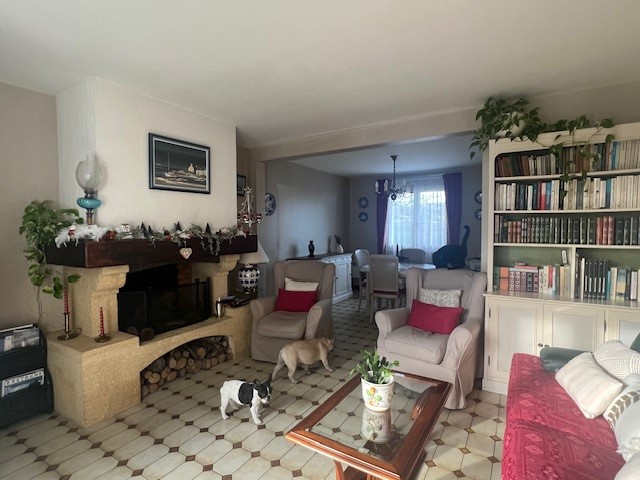 Vous découvrirez au rez-de-chaussée une belle entrée avec placards donnant sur un séjour-salon de 25 m2 avec cheminée, une cuisine équipée et aménagée, wc séparés, salle de bains, deux chambres.