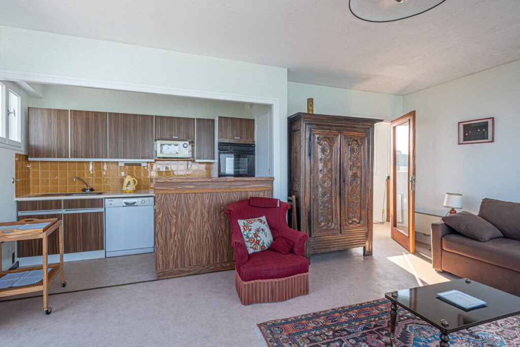 SUR LE PORT D’ORANGE, dans résidence sécurisée et de standing, un APPARTEMENT face Mer situé au deuxième étage composé d’une entrée avec placard, une pièce à vivre lumineuse ayant une double vue mer avec cuisine ouverte, wc, une chambre avec vue mer, une salle de bains