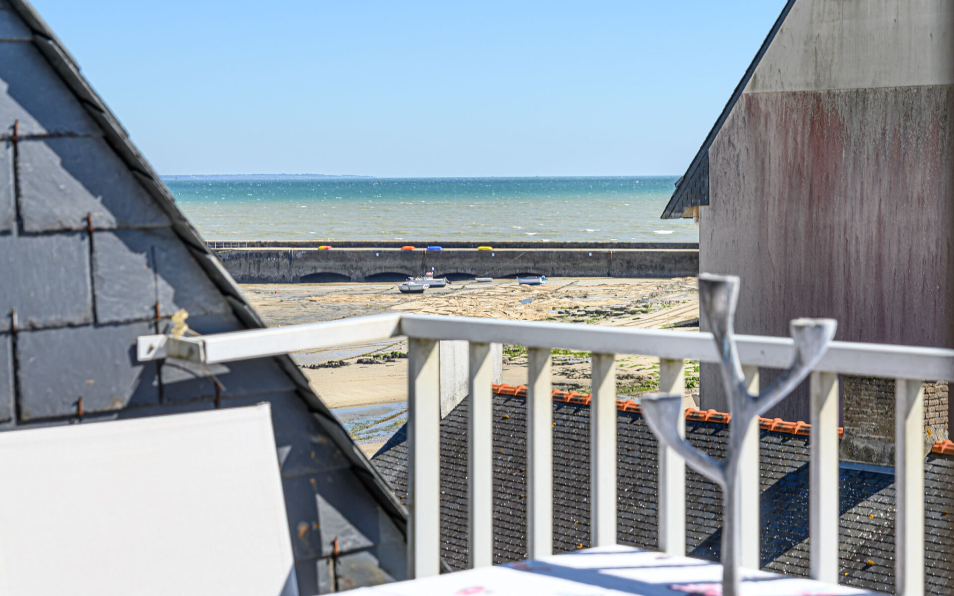 Au troisième niveau : une jolie chambre sous mansarde dotée d’une grande fenêtre de toit offrant également une magnifique vue mer