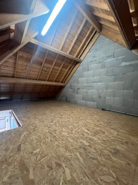 FACE A LA MER IMMOBILIER vous propose dans une résidence sécurisée et fermée en plein centre-ville de QUIBERON un grand garage avec au-dessus un grenier aménagé