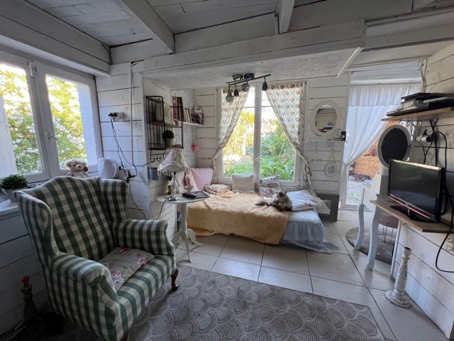 Elle comporte au rez-de-chaussée une cuisine équipée avec ilot central, une belle pièce de vie, une salle de bains avec wc, l’ensemble donnant sur un jardin bucolique situé à l’arrière de la maison, clos et à l’abri des regards,