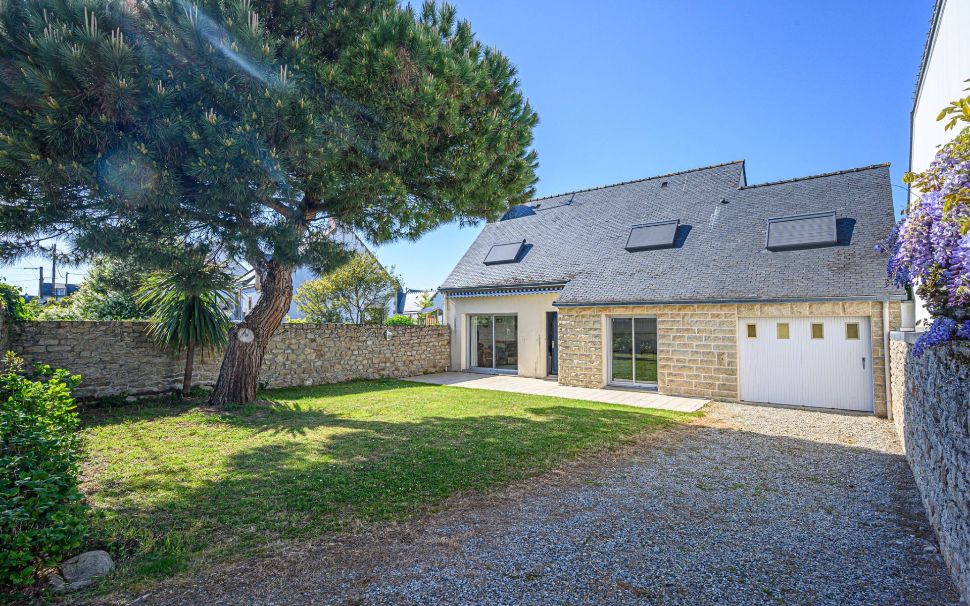 EN EXCLUSIVITE FACE A LA MER IMMOBILIER vous propose à proximité immédiate du centre-ville, et des plages du côté Baie une agréable maison orientée plein sud avec terrasse donnant sur un jardin clos de murs, ayant :