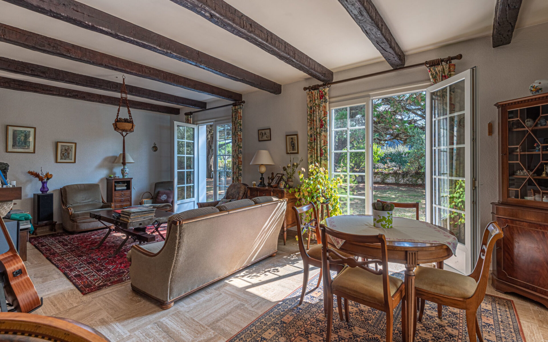 Dans un environnement calme et résidentiel, à proximité des plages, une maison d’habitation d’une surface habitable de 145 m2 environ, édifiée sur un terrain clos et arboré d’une contenance de 1266 m2, ayant :